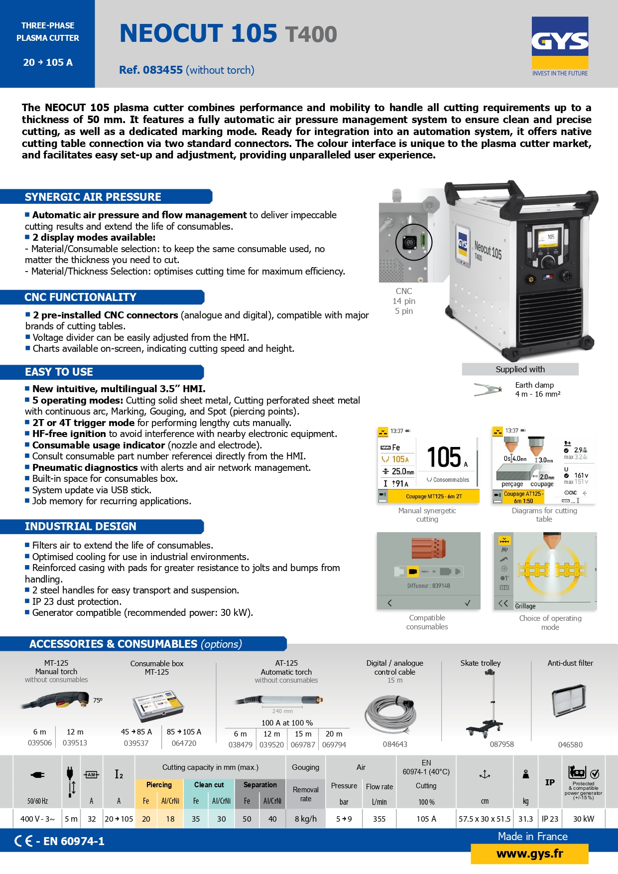 The NEOCUT 105 plasma cutter combines performance and mobility to handle all cutting requirements up to a