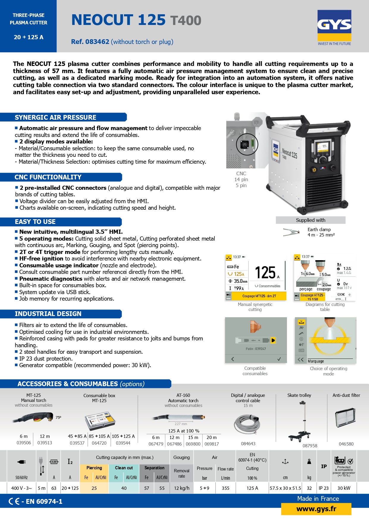 The NEOCUT 125 plasma cutter combines performance and mobility to handle all cutting requirements up to a