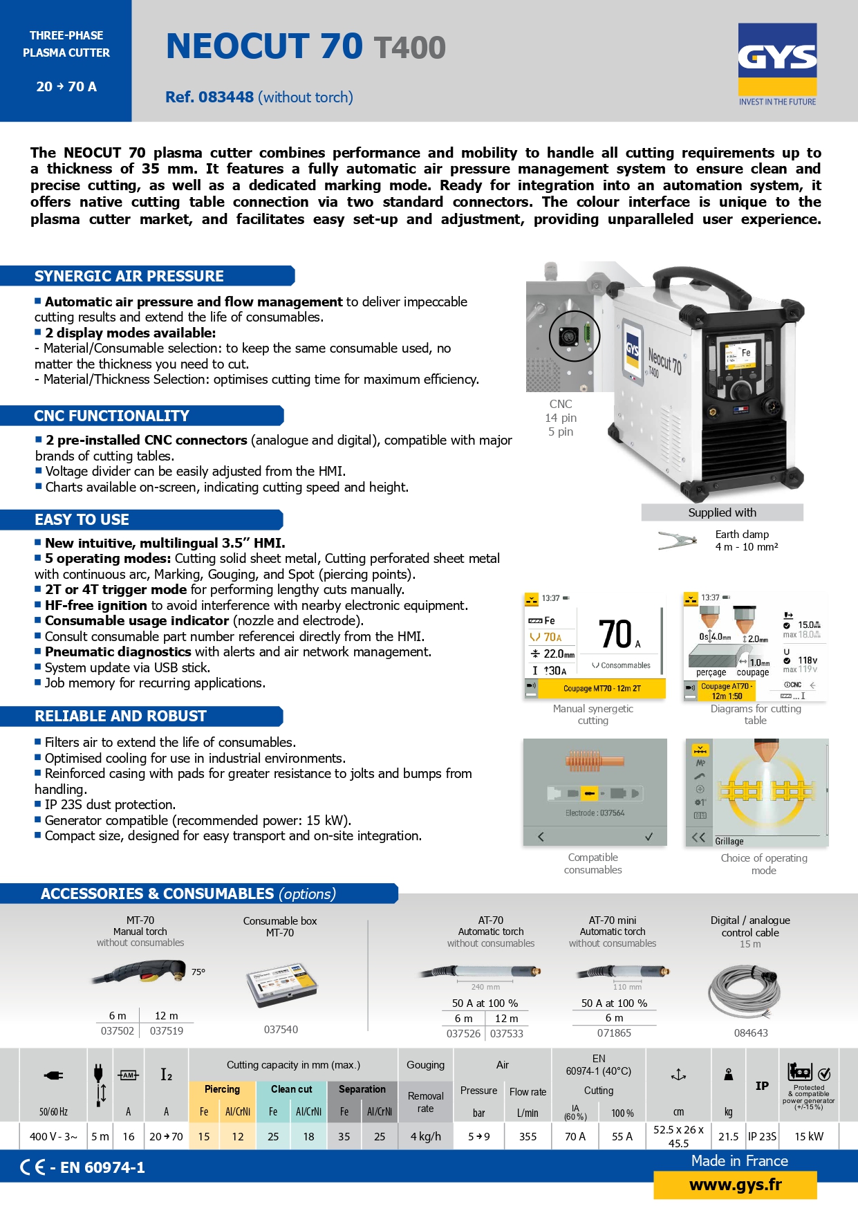 The NEOCUT 70 plasma cutter combines performance and mobility to handle all cutting requirements up to